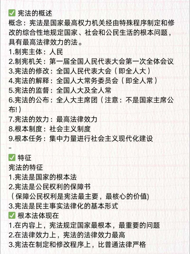 宪法和一般法律的区别 宪法是“国家的根本大法”,是所有法律的“母亲”和“基石”;而一般法律是“子法”,是根据宪法制定的具体规则,下面我们从几个关键方面进行详细对比:核心区别对比表对比维度宪法一般法律法律地位与效力最高法律效力,任何法律、法规、规章都不得与宪法相抵触,如果抵触,则该法律无效,次级法律效力,其效力低于宪法,必...