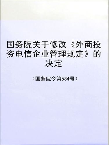 外商投资电信企业,规定具体门槛有哪些? 概述《外商投资电信企业管理规定》是由中华人民共和国国务院于2001年12月11日发布,并根据2016年和2017年的国务院令进行了修订,它的核心目的是:规范管理:规范外国投资者在中国境内投资电信业务的行为,扩大开放:适应中国加入世界贸易组织(WTO)的承诺,逐步开放电信市场,保障安全:维护电信网络的...