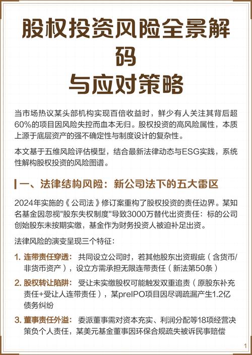 股权投资风险关注重点有哪些关键点? 投前尽职调查阶段(风险识别与评估)这是风险控制的第一道,也是最重要的一道防线,此阶段的核心是“把脉问诊”,尽可能全面、深入地了解项目,避免“踩坑”,宏观与行业风险政策与监管风险:行业政策变动: 目标公司所在行业是否受到严格监管(如金融、教育、医疗、游戏)?近期是否有新的政策出台,可能对公司的业务模式...