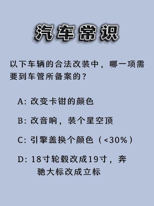 汽车外观改装,合法边界在哪? 下面我将为您详细梳理中国关于汽车外观改装的法律法规、常见的合法与非法改装项目,以及相应的处罚措施, 核心法律依据汽车外观改装主要依据以下法律法规:《中华人民共和国道路交通安全法》:这是最根本的法律,规定了车辆上路行驶的基本安全标准,《机动车登记规定》:规定了车辆登记、变更、转移等具体操作流程,明确哪...