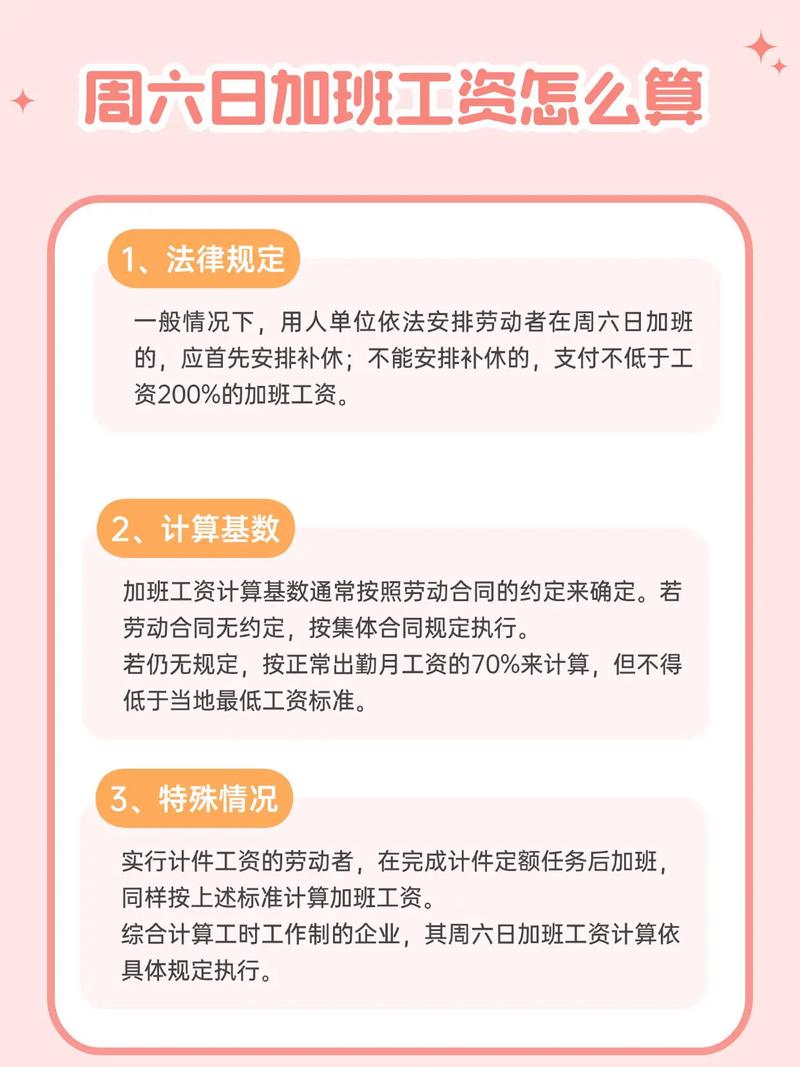 加班工资计算基数,法律如何规定? 核心结论根据中国现行法律法规,加班工资的计算基数不是固定不变的,而是有明确的确定顺序和原则,其核心法律依据是《中华人民共和国劳动法》和《工资支付暂行规定》, 法律规定的核心原则与计算方法加班工资的计算分为三种情况:工作日加班、休息日加班、法定节假日加班,它们的计算基数和倍数都不同,计算基数的三种确定...