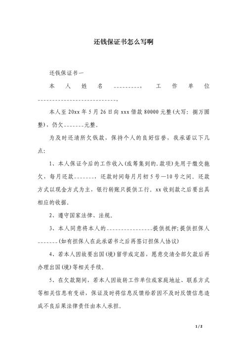 还款保证书怎样写才有法律效力? 还款保证书怎么写才有法律效力?(2024年最新律师指南,附模板)** 借钱给别人,如何确保对方按时还款?一份具有法律效力的还款保证书是关键,本文将从律师专业角度,详细解读还款保证书的必备要素、撰写要点、常见误区,并提供一份可直接使用的模板,助您有效规避风险,保障自身合法权益,引言:为什么一份“有法律...