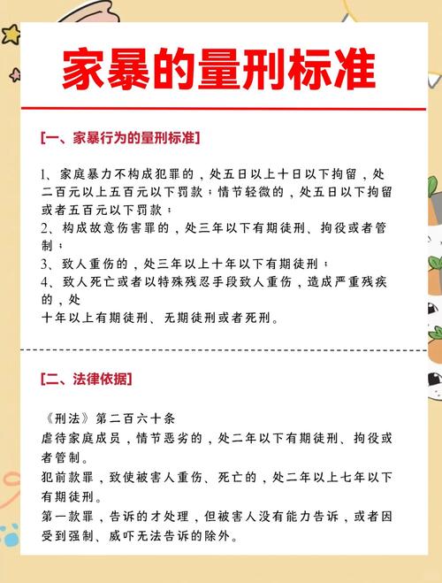 家暴法律判刑赔偿标准如何确定? 第一部分:刑事责任(如何“判刑”)刑事责任是家暴行为中最严厉的惩罚,主要根据家暴行为的严重程度和造成的后果来定罪,常见的罪名和判刑标准如下:故意伤害罪这是最常见的家暴入罪罪名,定义:指非法损害他人身体健康的行为,判刑标准:轻伤(二级或以上):构成故意伤害罪,3年以下有期徒刑、拘役或者管制,重伤:刑罚...