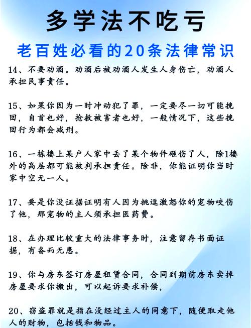 生活必备法律常识,你都知道哪些? 了解一些基本的法律常识,就像给我们的生活穿上了一层“防弹衣”,能帮助我们更好地保护自己和家人的权益,避免不必要的麻烦,以下我将从人生不同阶段和高频生活场景两个维度,为您梳理一些最核心、最实用的法律常识, 人生不同阶段的“法律必修课”成年之初(18岁+)刑事责任年龄: 年满16周岁,犯罪需要承担完全刑...