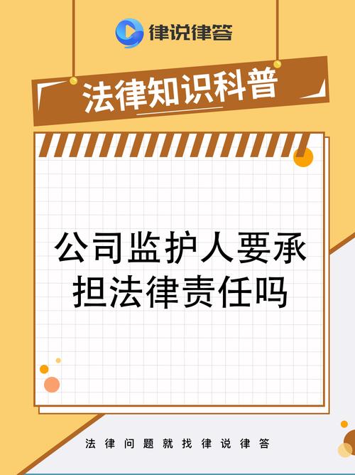 公司监护人负法律责任,具体指哪些责任? 法律上并没有“公司监护人”这个正式身份,这个说法通常源于两种情况:口语误称:人们可能将公司的法定代表人、实际控制人或主要股东,因其对公司拥有“控制权”而类比为“监护人”,特殊情况:在某些特定类型的公司(如一人有限责任公司)中,股东的角色确实有类似监护人的特征,我们不能直接套用《民法典》中关于“自然人...