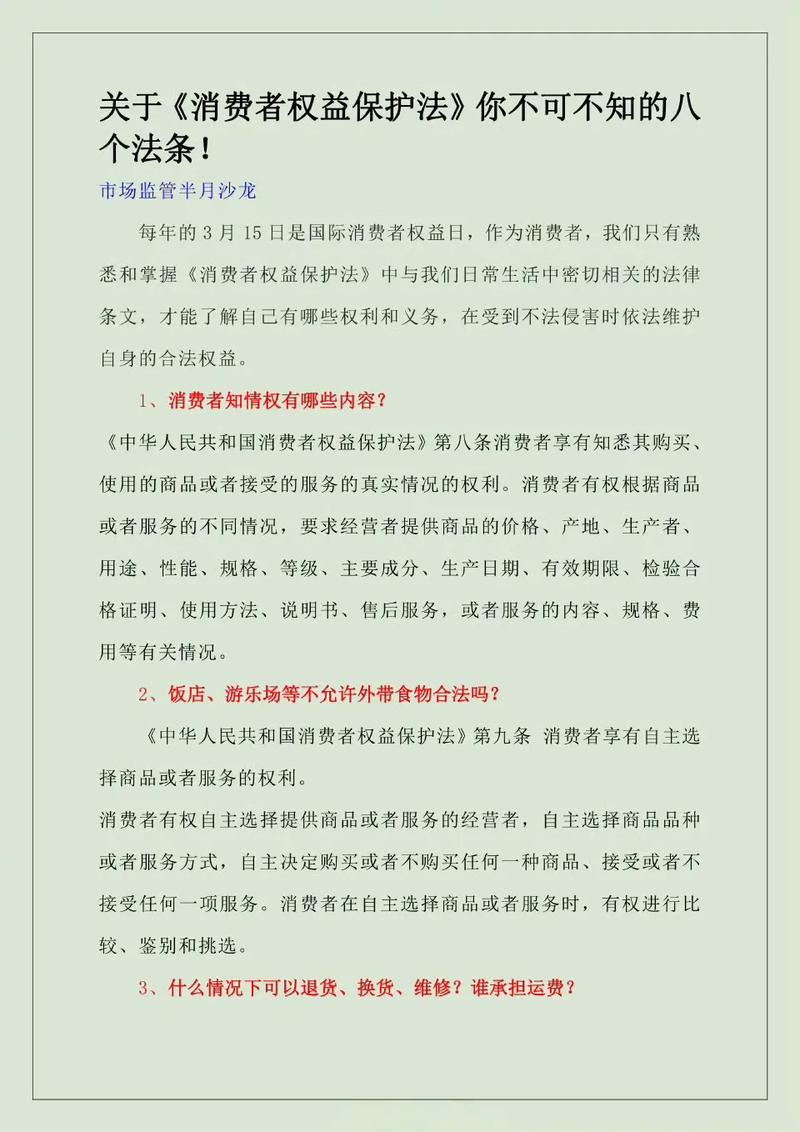 消费者知情权的法律依据 消费者知情权是消费者享有的基本权利之一,它指的是消费者在购买、使用商品或者接受服务时,所享有的知悉其购买、使用的商品或者接受的服务的真实情况的权利,这项权利是消费者做出理性判断和自主选择的前提,是保护消费者权益的基石,其法律依据是一个多层次、多角度的体系,主要包括以下几个层面: 核心法律:《中华人民...