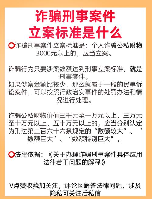 电信网络诈骗立案标准 需要明确的是,中国并没有一部名为《电信网络诈骗法》的独立法律,而是将电信网络诈骗作为一种严重的诈骗犯罪来处理,其核心法律依据是《中华人民共和国刑法》和最高人民法院、最高人民检察院、公安部联合发布的司法解释,电信网络诈骗的立案标准,主要围绕诈骗罪的立案标准展开,并根据其犯罪特点(如跨区域性、非接触性、...