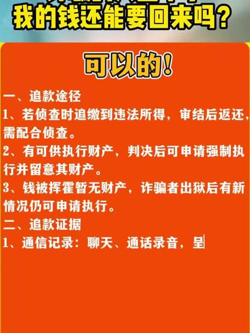 钱被骗后,还能追回吗? 这是一个非常令人焦虑和痛苦的问题,钱要回来的可能性是存在的,但难度很大,并且受多种因素影响,请不要灰心,立即采取行动是提高追回几率最关键的一步,可能性存在,但概率不高:能否追回资金,主要取决于发现速度、资金流向以及警方的侦破能力,钱一旦被成功转移,尤其是经过多层“洗钱”后,追回的难度会呈几何级数增长...