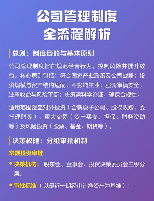 第一条 目的与依据 为规范[投资公司名称](以下简称“公司”)的投资业务运作,明确各部门及岗位职责,建立科学、严谨的投资决策流程,有效防范和控制投资风险,保障公司资产安全,提高投资回报,实现公司持续、稳定、健康发展,依据《中华人民共和国公司法》、《中华人民共和国证券投资基金法》、《私募投资基金监督管理暂行办法》等相关法律法规及公司章程,特制定本制度。