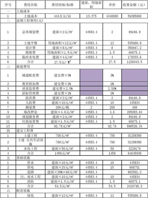 这是最常用、最基础的划分方式,主要依据国家《建设工程工程量清单计价规范》和行业惯例,总投资主要由土地成本、前期工程费、建安成本、配套及其他费用、开发间接费、管理费用、财务费用、销售费用以及相关税费构成。