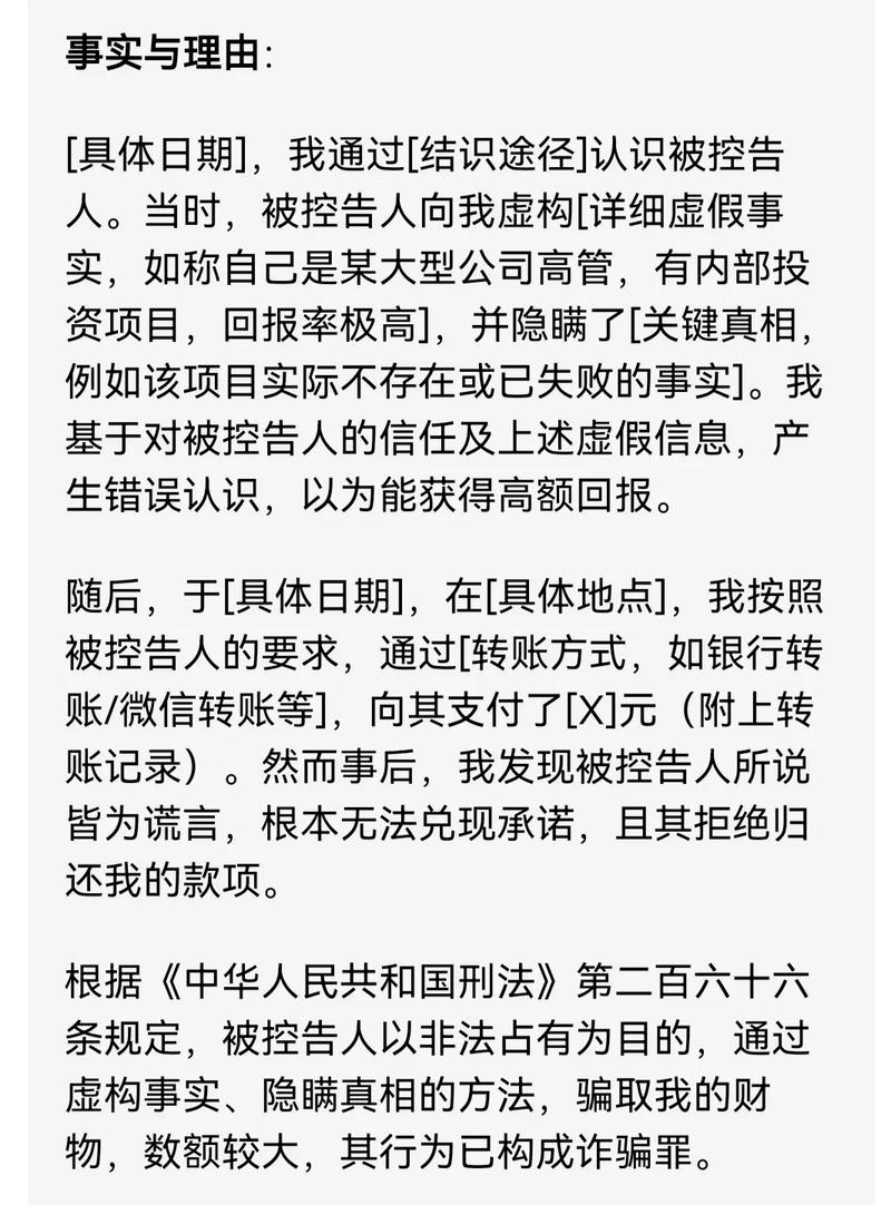 - 撰写起诉状: 起诉状应包括原被告基本信息、诉讼请求(请求撤销合同、返还已支付款项、赔偿损失、支付违约金等)、事实与理由(详细说明合同诈骗的经过和依据)、证据清单及证据来源。