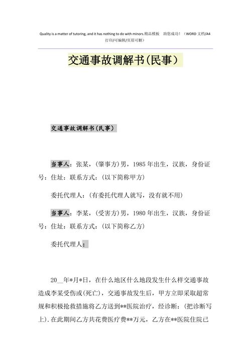 - 认真对待: 签字前务必仔细阅读调解书的每一项内容,特别是赔偿金额、支付方式、支付期限等,确保与自己的预期一致。