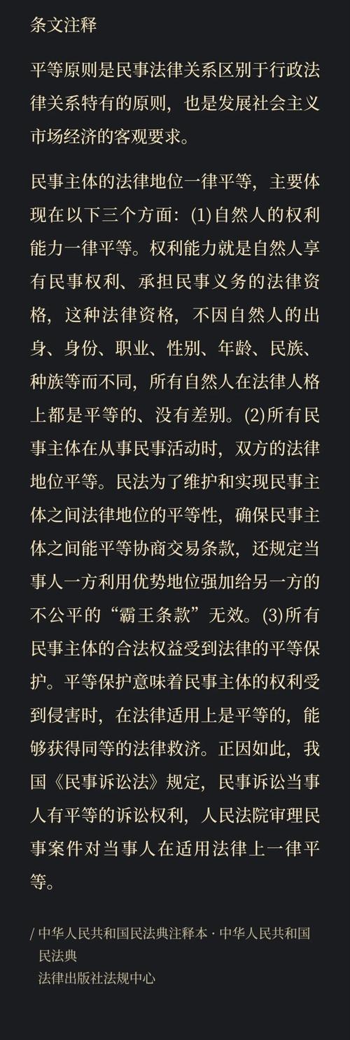 - 歧视: 法律不得基于不合理的因素(如出身、性别、种族等)对公民进行区别对待,从而剥夺或限制其合法权益,这种制度性的歧视是现代文明社会所坚决摒弃的。