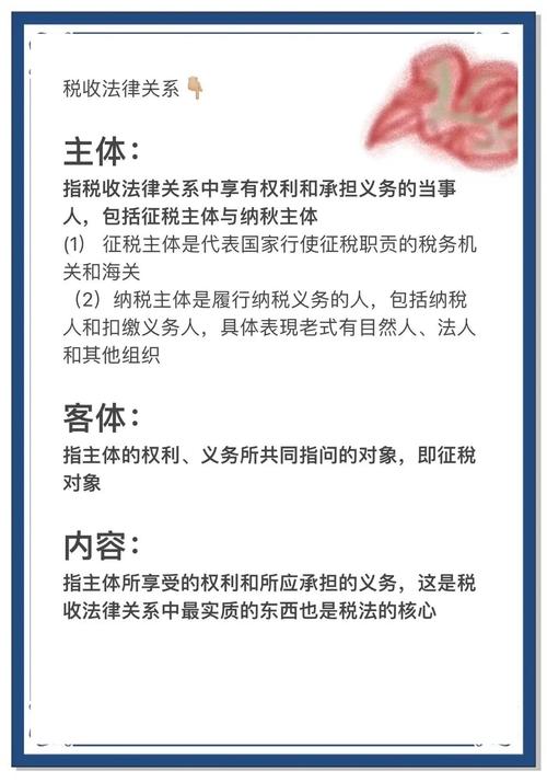 理解这三者的构成,有助于我们清晰地把握税收法律关系的全貌,明确国家与个人、组织在税收活动中的地位、权利和责任,从而更好地维护自身合法权益和履行纳税义务。