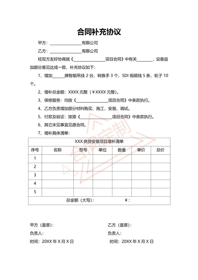 - 采用书面形式:无论原合同形式如何,都强烈建议将补充合同以书面形式(如《补充协议》)固定下来,并由双方签字盖章,这是最有力的证据。