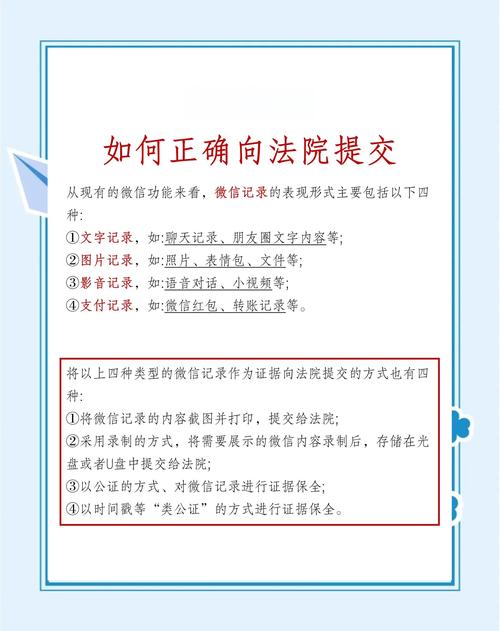 | 注意事项 | 截图要包含完整信息(双方身份、时间),避免断章取义,绝对不要非法获取。 |