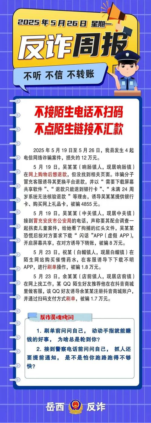 - 对任何要求“先转账再返利”、“转账激活账户”等要求,一律拒绝。