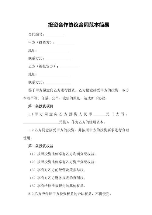 - 明确“钱袋子”的来龙去脉:清晰规定投资金额、支付方式、时间节点,确保每一分钱都花在明处。