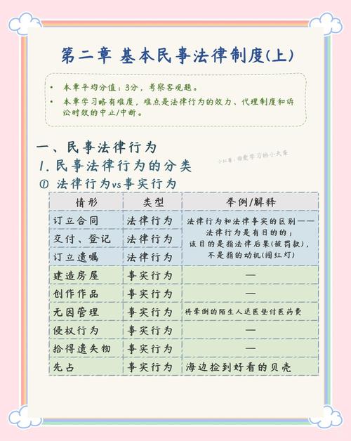 - 民事法律行为:这是一个狭义的、特定的概念,它特指合法的、能够按照当事人意思表示产生预期法律效果的行为,它是民事行为中最重要、最核心的一部分。