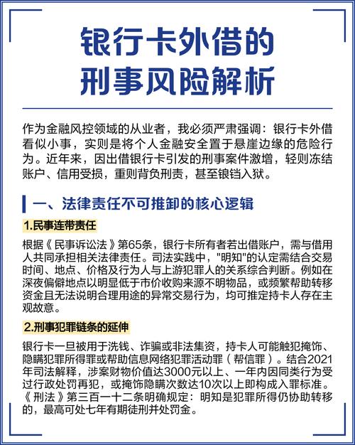 无论出于何种原因(如朋友、亲属请求,或是为了赚取少量“好处费”),都绝对不要出借自己的银行账户,这不仅是高风险行为,在很多情况下,本身就可能构成违法或犯罪。
