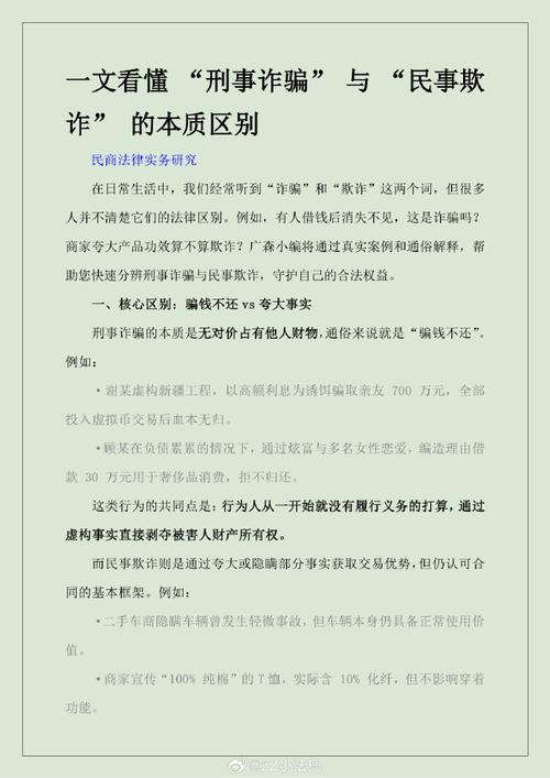 - 诈骗:是一个宽泛的法律和概念术语,指一切以非法占有为目的,使用虚构事实或者隐瞒真相的方法,骗取数额较大的公私财物的行为,它的核心是“骗”。