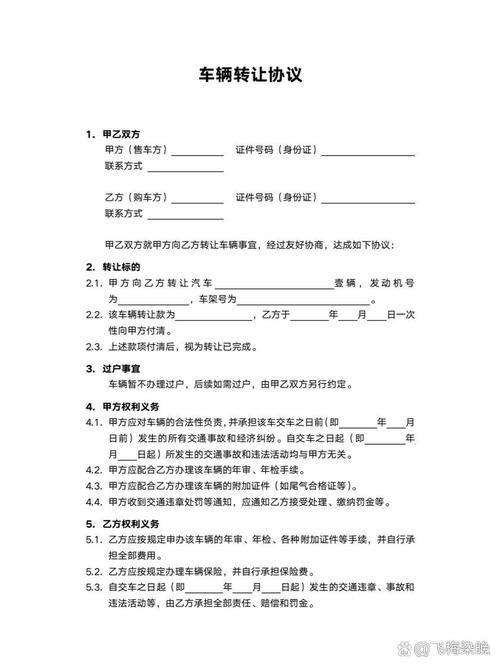 - 对内(买卖双方之间):协议具有法律约束力,买方有权要求卖方履行合同(即协助办理过户),卖方有权要求买方支付车款,如果一方违约(比如卖方不配合过户,或买方不付尾款),另一方可以依据这份协议向法院提起诉讼,要求对方承担违约责任(如继续履行、赔偿损失等)。