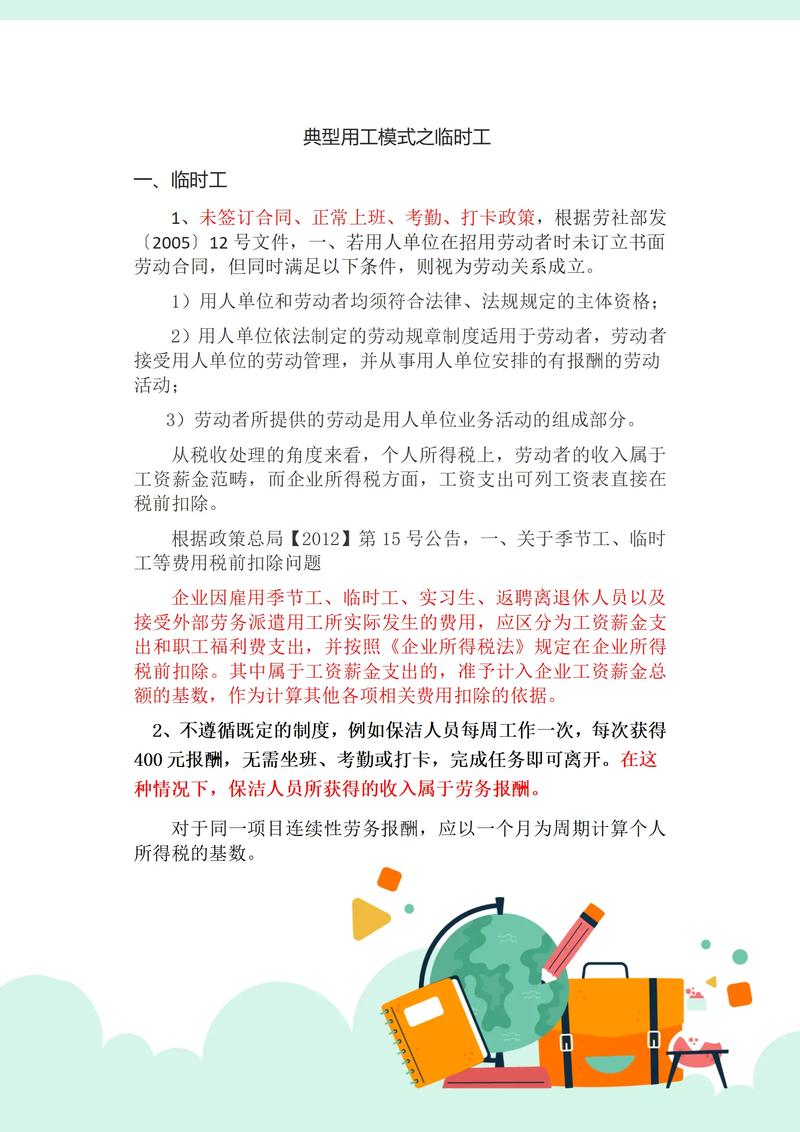 - 务必签订合同: 无论是什么关系,都要求签订书面协议,如果是劳动关系,合同中应明确岗位、工资、期限等;如果是劳务关系,要明确工作内容、报酬、安全责任等。