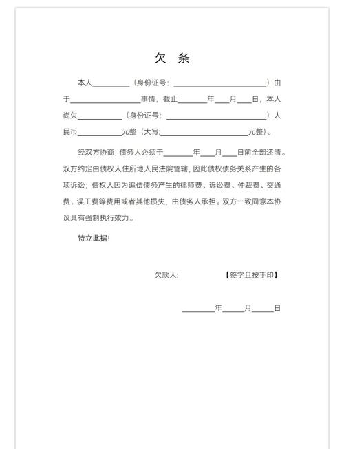 - 借款用途: 最好写明,如“用于个人周转”、“用于生意经营”等,有助于证明这是真实的借贷关系。