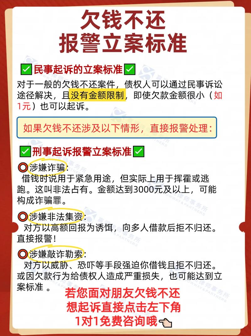 - 缺点:立案标准高,需要提供充分的证据证明对方“以非法占有为目的”,如果证据不足,警方可能不予立案,只能走民事诉讼。