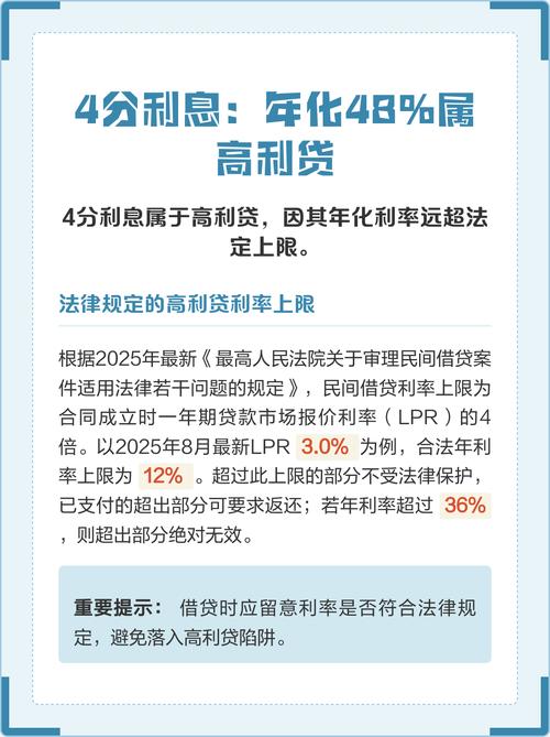 - 司法保护上限(LPR的4倍): 法院支持的利率上限是一年期贷款市场报价利率(LPR)的4倍。