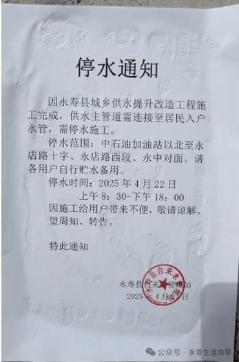 - 记录时间:详细记录停水的开始和结束时间。