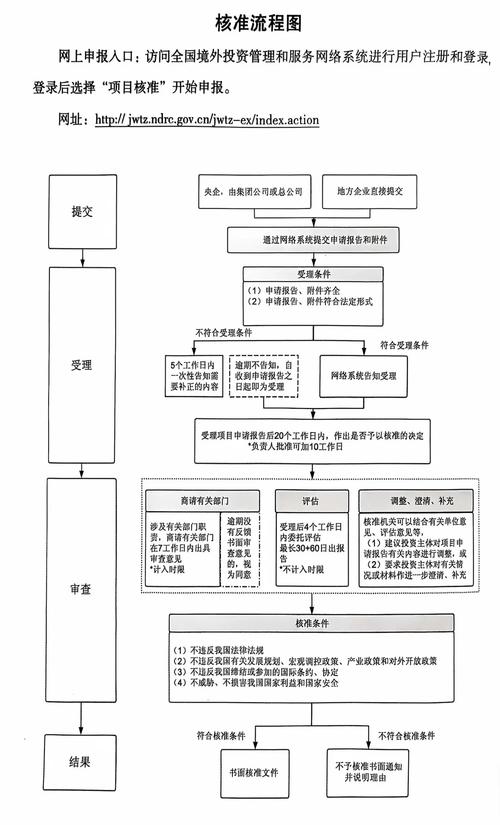 - 核准:针对上述“敏感地区”和“敏感行业”的投资,需向发改委提交申请,获得正式核准文件后方可实施。