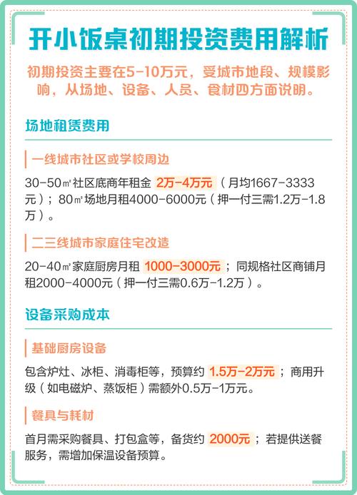 下面我将为您详细拆解投资小饭桌所需的各项费用,并提供不同投资规模的估算,帮助您做出更清晰的规划。