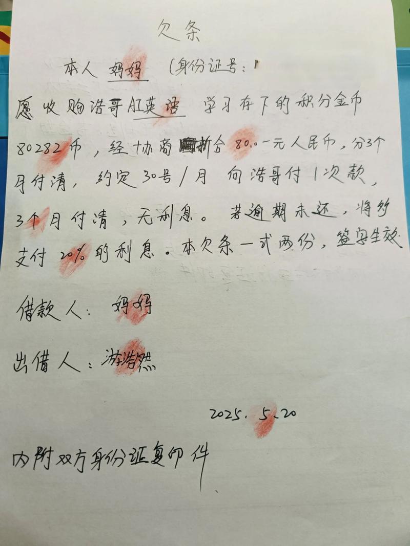 - 建议: 最好在欠条上附上双方当事人的身份证正反面复印件,并在复印件上签字确认“与原件一致”,这能确保身份信息真实,避免冒用他人身份。