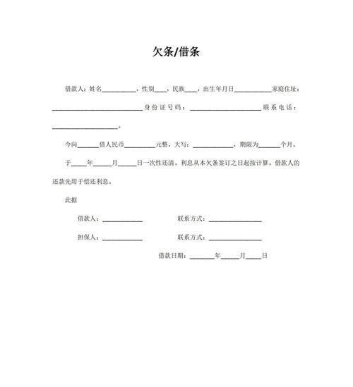 - 权利义务清晰:借条明确了出借人(债权人)和借款人(债务人)的身份,以及借款金额、利息、还款日期等核心条款。
