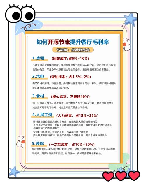 - 控制成本,尤其是装修和租金: 新手最容易在这两项上超支,导致启动资金紧张,抗风险能力极差,装修够用、干净、符合定位即可。