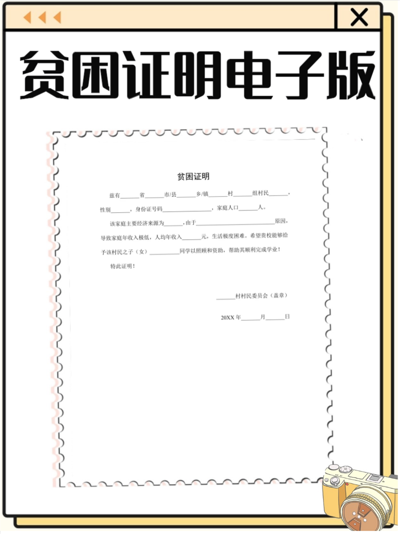 - 附件材料佐证: 如有低保证、特困人员救助供养证、残疾证、重大疾病诊断证明、医疗费用票据、学生证、学费缴纳凭证等,应一并提交复印件,作为贫困证明的有力补充。