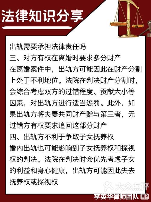 - 法律后果:在分割财产时,法院会向无过错方(女方)倾斜,可以判决女方分得超过50%的共同财产,甚至可能达到70%-80%,具体比例由法院根据过错程度、财产状况等因素综合判定。