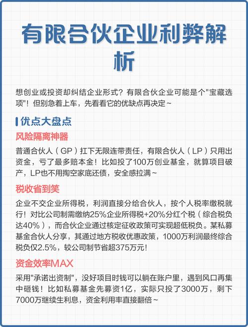 风险投资有限合伙企业 是一种精妙的法律和商业设计,它通过 GP/LP 的分工与合作,构建了一个能够有效汇集社会资本、并由专业团队进行高风险、高回报投资的理想平台,它既保护了投资者的利益,又激励了管理团队,是现代风险投资行业得以蓬勃发展的制度基石。