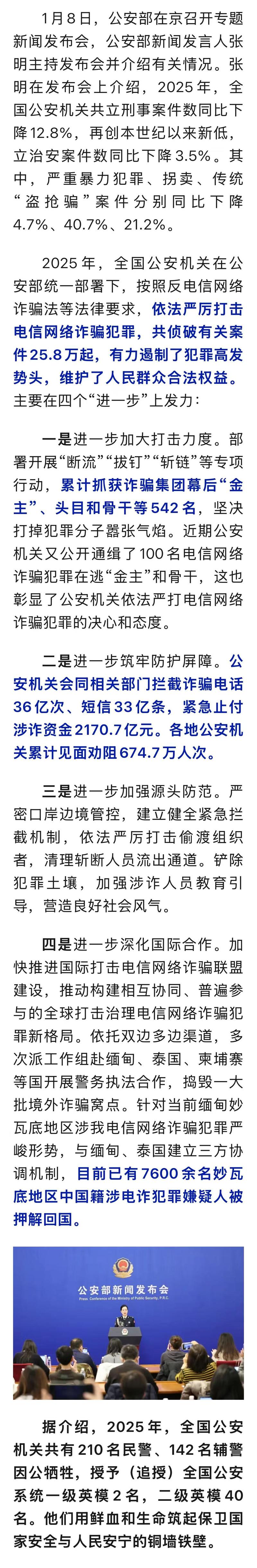 经过一年的“长城”等专项行动,2025年打击电信网络诈骗取得了显著成效: