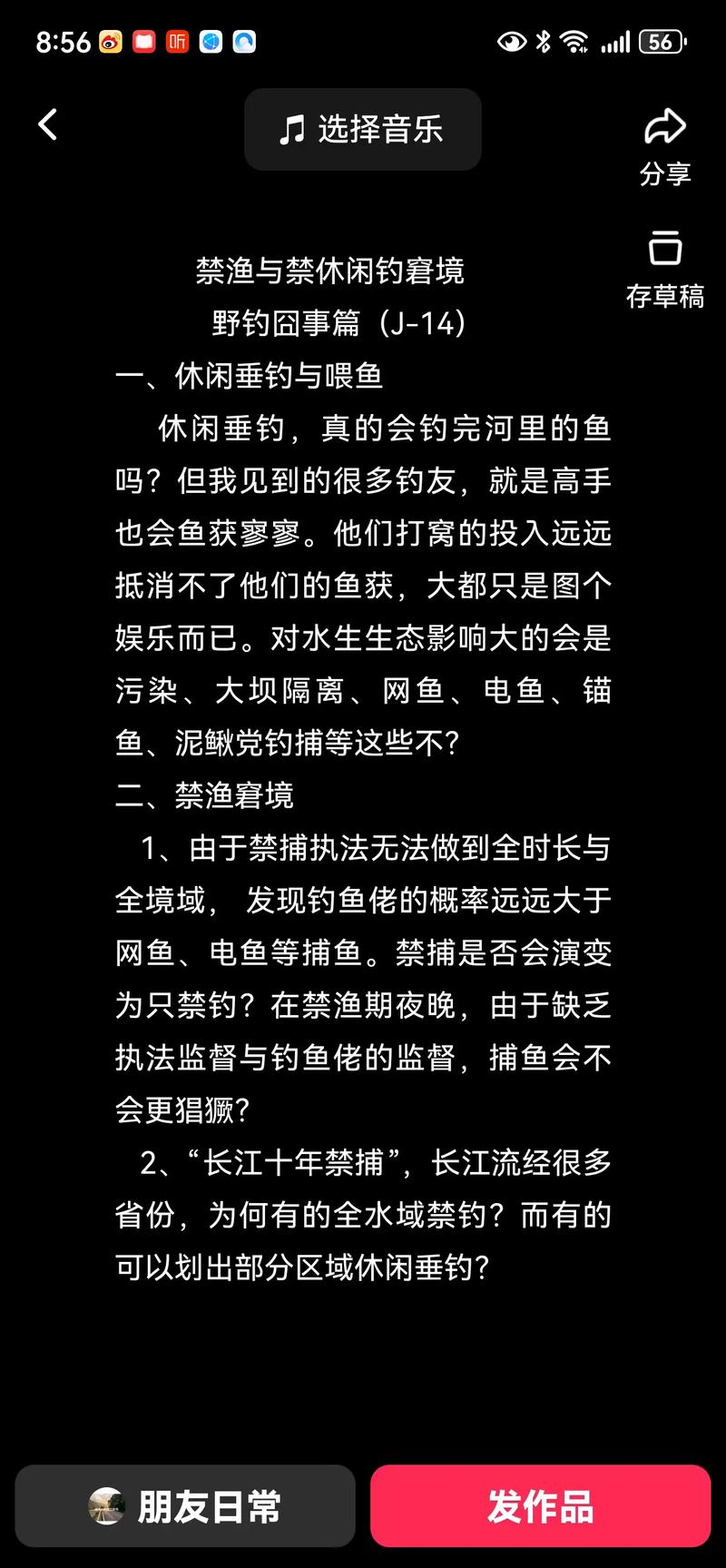 - 选择合法钓点:不要在饮用水水源保护区、水产种质资源保护区、自然保护区等核心区域钓鱼。