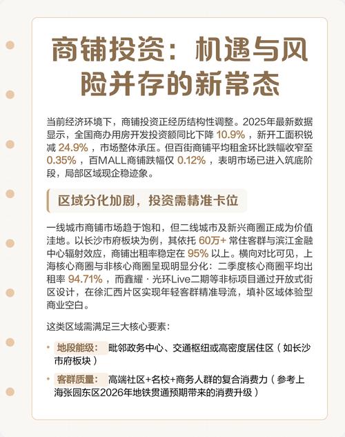 2025年,商铺投资的“黄金时代”已经落幕,“白银时代”的尾巴也已过去,对于普通投资者来说,住宅投资的门槛和风险在当时可能更低,流动性也更好,商铺投资已经从一种大众理财方式,演变成了一种需要深度研究、精准判断和长期持有的专业投资行为。