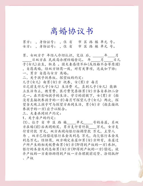 - 审查与登记:民政局工作人员会对协议内容进行初步审查,确保其不违反法律强制性规定,审查通过后,会为双方办理离婚登记手续,并发放离婚证。