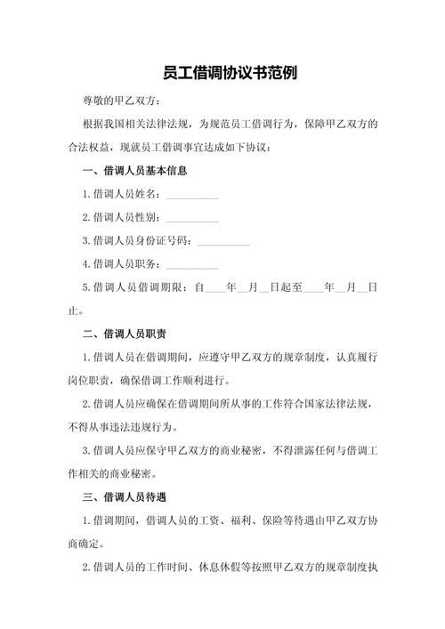 为了明确三方的权利义务,避免纠纷,签订一份书面的《借调协议》至关重要,这份协议是处理借调关系的主要依据,通常应包含以下内容: