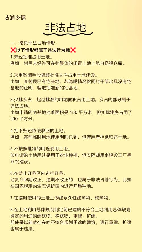 - 核心是“审批”:合法用地的前提是获得合法的批准文件(如建设用地规划许可证、农用地转用审批手续等),没有这个,占地就是“非法”的。