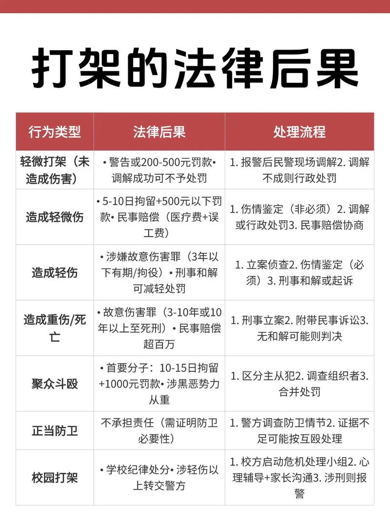 | 刑事责任 | 《刑法》 | 造成轻伤、重伤、死亡,或情节恶劣(如寻衅滋事) | 打人者个人(可能坐牢) |