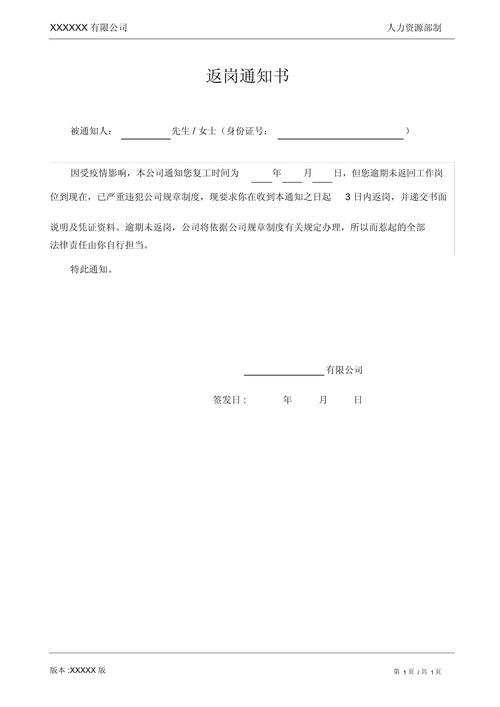 - 法律后果告知:这是至关重要的一环,必须明确告知员工,如果无正当理由在规定时间内不返岗,公司将依据《劳动合同法》及公司《员工手册》第X条的规定,按旷工处理,并可能面临警告、罚款直至解除劳动合同等后果。