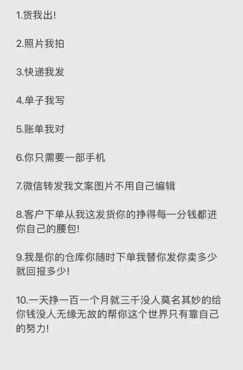 - 警惕任何要求交钱的“代理”: 真正的一件代发或分销,是绝对不会让你先交钱、交保证金或购买一堆货的,一旦让你先掏钱,就要立刻提高警惕。