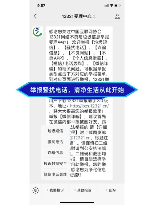 - 短信举报: 编辑短信内容“举报+号码+类型(如骚扰/诈骗)”,发送到 12321。