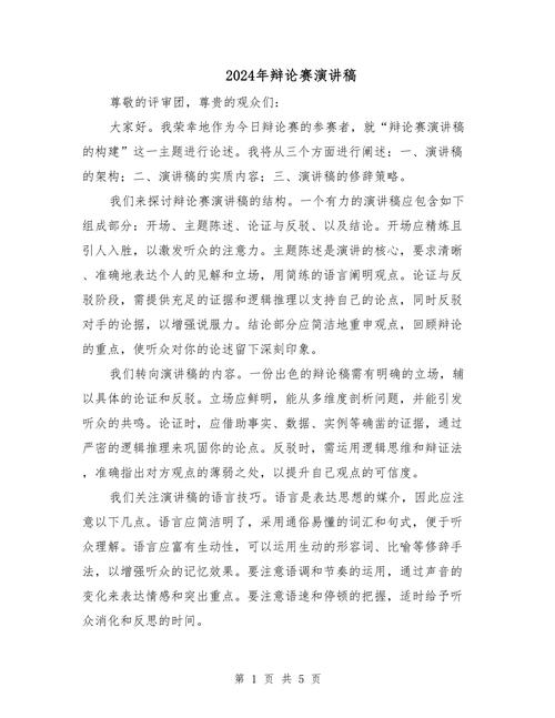 尊敬的主席、评委、对方辩友,大家好!